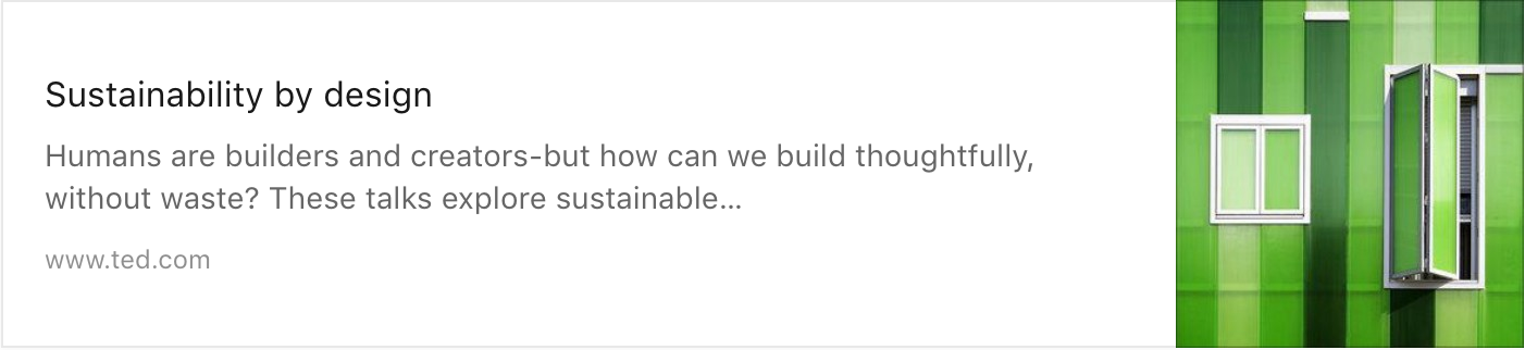 The TED Talk Sustainability by Design Channel contains 12 relevant talks. The following 2 are particularly relevant to Transition Design: Product designer Eben Bayer discusses a recipe for a new class of organic packaging materials made from fungus/mushrooms. Rachel Armstrong discusses the design and development of architecture that grows and repairs itself, coupling with the environment.